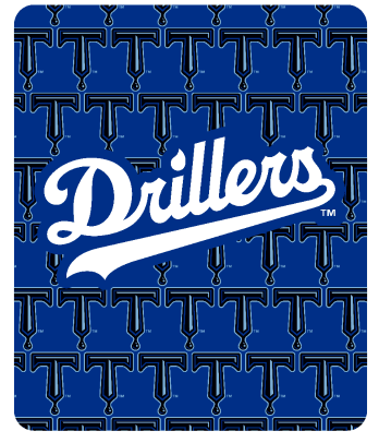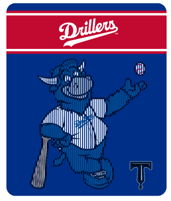 Logo of the Drillers with a stylized 'T' and red and blue background New